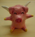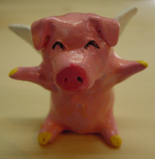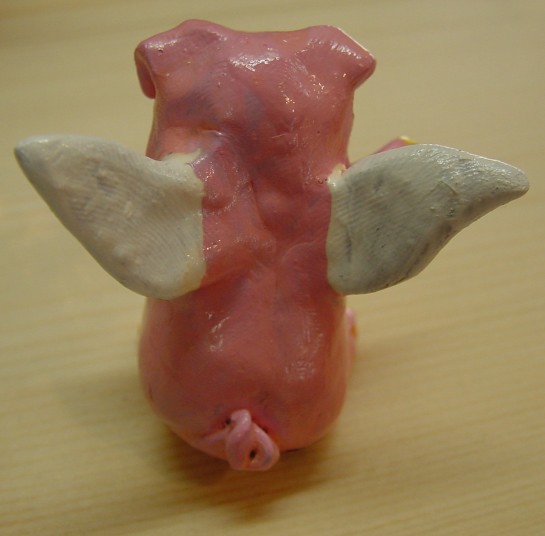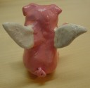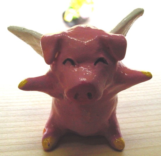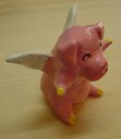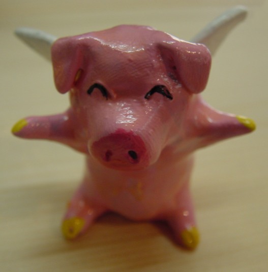 サムさんの住んで いるアイオワ州の 特産品のひとつが ブタさんだそうで す。その他トウモ ロコシなど農業の 盛んな州です。 この天使ブタさん はサムさんの紙 粘土作品です。